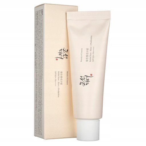 Relief Sun : Rice + Probiotics SPF50+ PA++++ to nowy chemiczny filtr przeciwsłoneczny, który jest delikatnie aplikowany na skórę, a dzięki składnikom łagodzącym i rozjaśniającym skórę jest również łatwy w użyciu dla wrażliwych typów skóry.