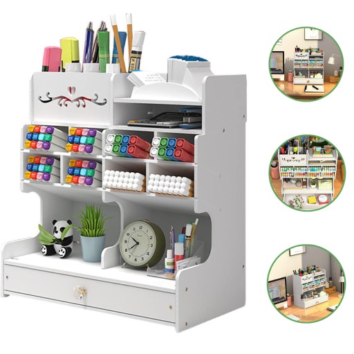 ✨✨✨Białe pudełko do przechowywania na biurko z szufladą, uchwyt na długopisy DIY, pudełko do przechowywania na biurko w biurze