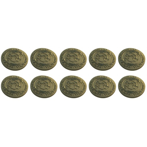 Zestaw 10 precyzyjnie zdobionych monet wykonanych ze stopów cynku.