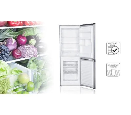 Lodówka MPM-182-KB-33/AA posiada przestronne i dobrze wyposażone wnętrze. W chłodziarce znajdziemy 3 półki, wysuwany pojemnik i półeczki na drzwiach. Zamrażarka mieści 3 przedziały, idealne do przechowania zapasów żywności, w tym jeden dostosowany do produktów o większych wymiarach lub niestandardowym kształcie.