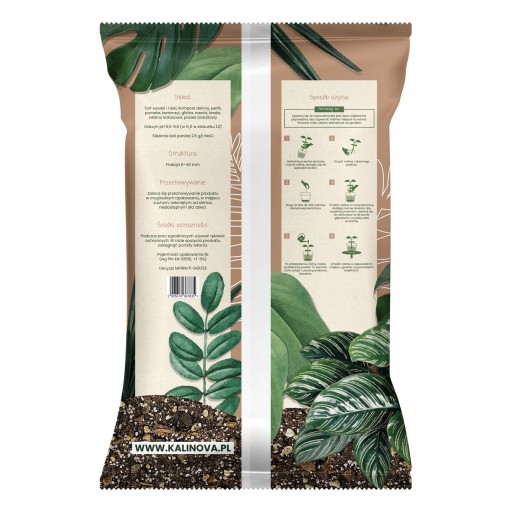 Podłoże Kalinova ma odczyn pH 5,5-6,5, co jest idealnym zakresem dla Monstery oraz większości roślin zielonych.