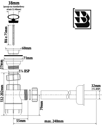 McALPINE Syfon umywalkowy butelkowy 1 1/4" x 32 mm ze spustem