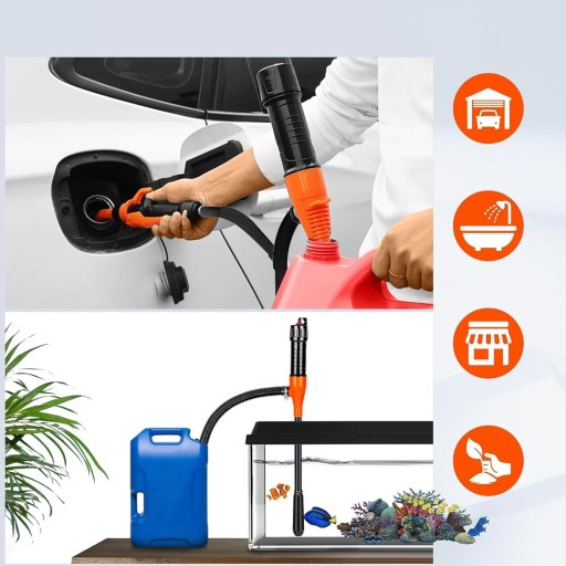 ➡️Jest bardzo łatwy w użyciu, wystarczy zanurzyć jeden koniec pompy w cieczy, włożyć rurkę wylotową do pojemnika i nacisnąć przycisk na górze pompy.
