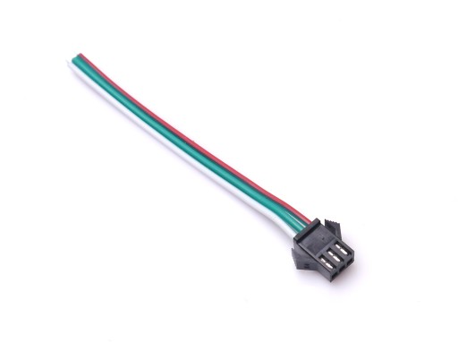 Konektor łączący paski LED RGB cyfrowe. Każda końcówka jest podpięta pod 10 centymetrowy przewód 20AWG. Montaż odbywa się poprzez przylutowanie przewodów do taśmy LED.
