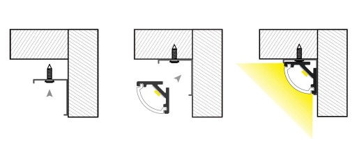 Profil narożny umożliwia montaż taśmy LED pod kątem 90°, co pozwala uzyskać elegancki efekt świetlny w narożnikach pomieszczeń.