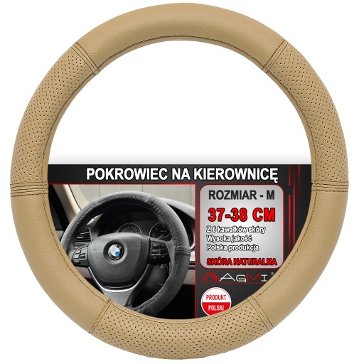 ⭐ SKÓRZANY POKROWIEC NA KIEROWNICĘ – Z 6 KAWAŁKÓW BEŻOWY / BEŻOWY PERFOROWANY