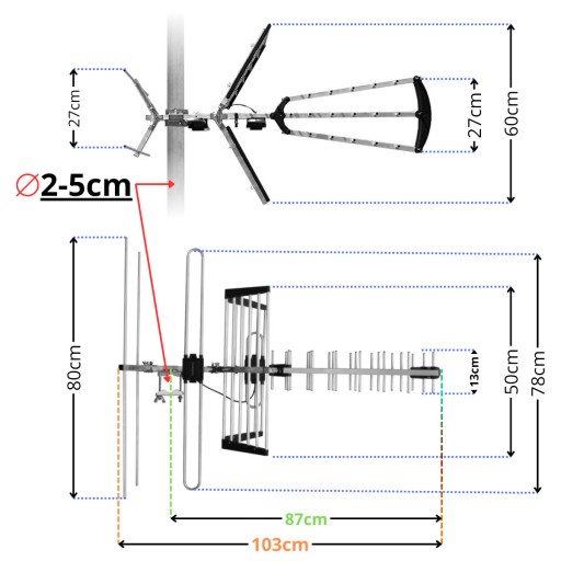 ✔️ Rozbudowana sekcja direktorów (VHF) – skuteczniejszy odbiór MUX-8