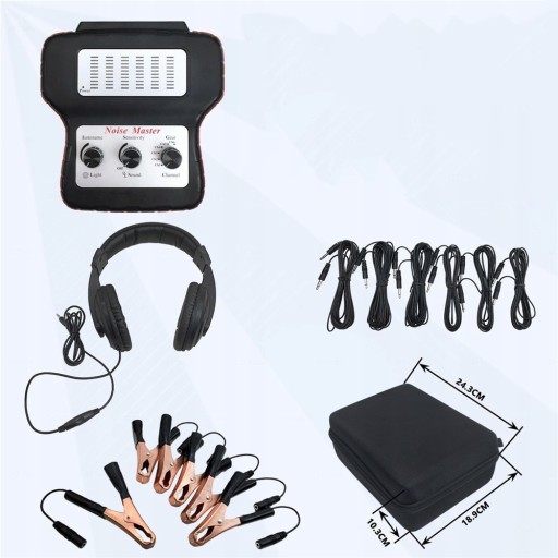 Ten zestaw stetoskopu samochodowego został specjalnie zaprojektowany i opracowany do sprawdzania nieprawidłowego hałasu silnika samochodowego, nieprawidłowego hałasu nadwozia i nieprawidłowego hałasu podwozia itp. Komputer główny ze zintegrowanym sześciokanałowym odbiornikiem sygnału jest używany z sześcioma różnymi czujnikami do wykrywania nieprawidłowego hałasu podczas jazdy samochodem, zsynchronizowanego z dźwiękiem i światłem, co może łatwo zidentyfikować wczesne problemy z samochodem i ułatwić naprawę samochodu tak szybko, jak to możliwe.