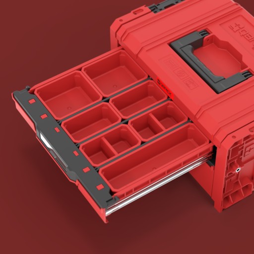 Pojemna, modułowa skrzynia narzędziowa wyposażona w dwie szuflady wysuwane na metalowych prowadnicach. Wygodny przycisk zapewnia łatwy dostęp do ich zawartości. Wersję Expert szuflady wyposażyliśmy w 6 regulowanych przegród oraz 10 pojemników, 7 na górnej półce oraz 3 głębokie z przegrodami na dolnej. Pojemniki na górnej półce pozwalają na organizację zarówno podłużnych jak i drobnych akcesoriów warsztatowych. Głębokie pojemniki na dolnej półce posiadają dodatkowe przegrody, po trzy na każdy pojemnik. Poliamidowe konektory boczne pozwalają na łatwe łączenie z pozostałymi modułami z linii PRO oraz ONE (z pokrywami Vario oraz Adapterem Multi). Wygodna rączka zapewnia komfort przenoszenia narzędzi. Identyfikację zawartości zapewnia miejsce na etykietę zabezpieczone poliwęglanową nakładką. Automatyczny system blokowania szuflad przed wysuwaniem gwarantuje wysoki komfort użytkowania skrzyni.