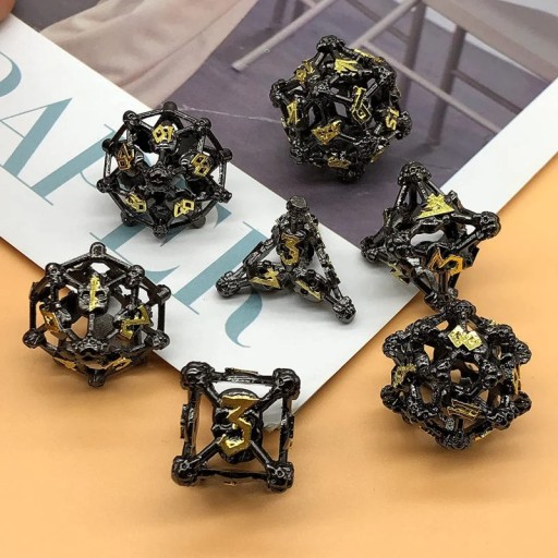 Zestaw siedmiu metalowych kości do gier fabularnych