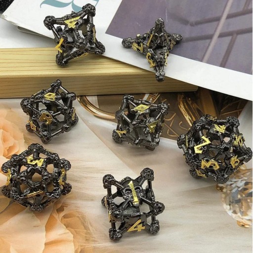 CZARNE KATAKUMBY ZESTAW 7 METALOWYCH KOŚCI RPG
