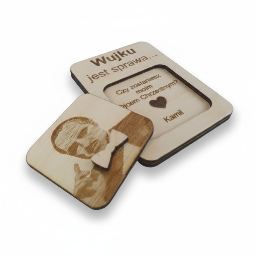 PYTANIE PROSBA DO CHRZESNTCH OJCIEC CHRZESTNY DREWNIANA KARTKA GRAWER