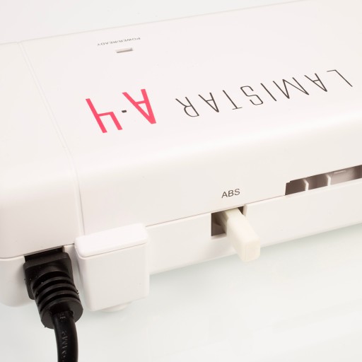Jeżeli dokument wraz z folią zakleszczy się wewnątrz urządzenia lub nastąpi konieczność zatrzymania laminacji na skutek np. nieprawidłowego włożenia dokumentu do szczeliny, skorzystaj z przełącznika ABS. Umożliwi Ci on łatwe i bezpieczne wycofanie folii z laminatora.