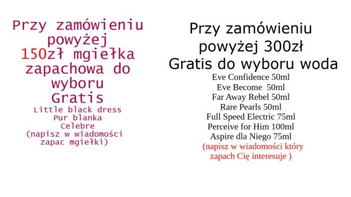 Większość wód jest foliowana przez producenta. Niektóre nie dla przykładu: Incandessence , Passion Dance, Summer White , Pur Blanca, Wild Country.