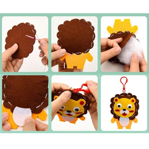 - zestaw elementów z filcu z narzędziami do szycia - zestaw zawiera wycięte z filcu elementy o danej tematyce, które należy ręcznie zszyć. Po częściowym zszyciu należy element wypełnić sztuczną watą. Na element można dodatkowo nakleić oczy lub mniejsze filcowe elementy