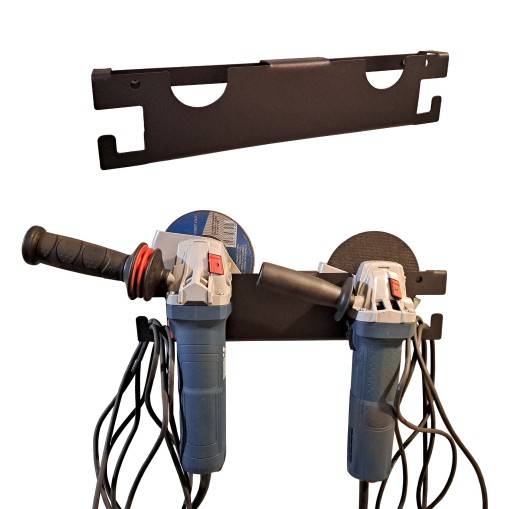 Podwójny wieszak na szlifierkę kątową – solidny i praktyczny uchwyt warsztatowy