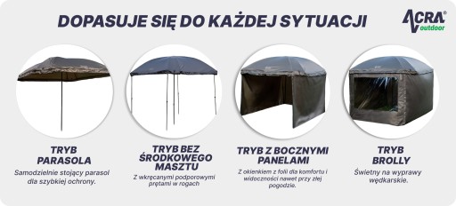ACRA Outdoor Shelter XXL oferuje kilka trybów użytkowania: