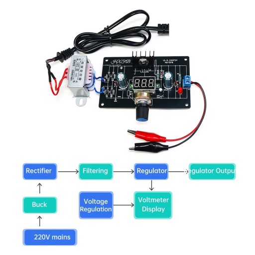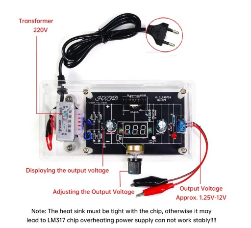 Zasilacz 1.25-12.5V z płynną regulacją napięcia, prąd wyjściowy 200mA, nadaje się do zasilania małych obwodów DIY.
