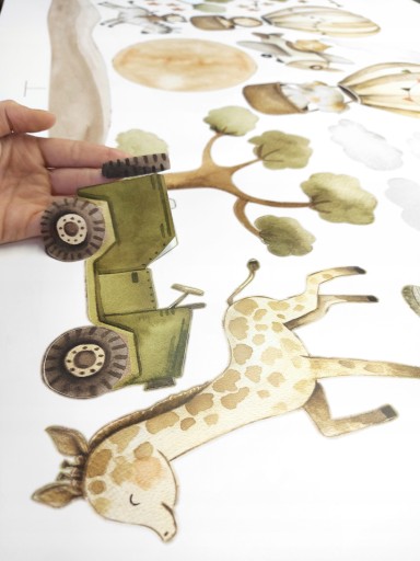Zestaw naklejek ze zwierzątkami w dżungli to piękna dekoracja pokoju każdego miłośnika zwierząt, idealnie nada się jako prezent chłopca jak i dziewczynki. Delikatne pastelowe naklejki w stonowanych kolorach będą pasować do każdego pomieszczenia. Dzięki dużej ilości elementów można stworzyć własne wspaniałe aranżacje dopasowane do pomieszczenia.