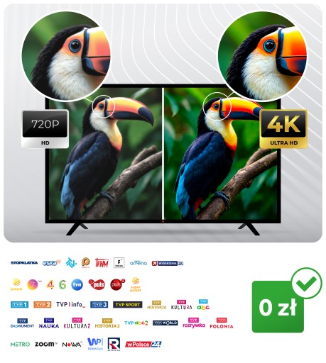 Zamień rozmazany obraz na perfekcyjną ostrość 4K i ciesz się telewizją tak wyraźną, jakbyś patrzył przez okno. Oglądaj swoje ulubione kanały bez abonamentu – ponad 30 stacji w najwyższej dostępnej jakości obrazu.