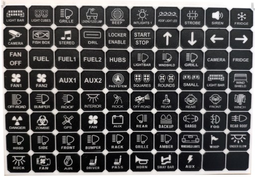 - 80 x sztuk naklejek do przyklejenia na panel sterujący