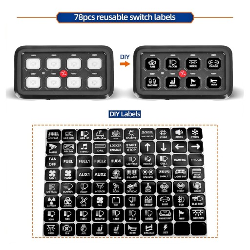 ПАНЕЛЬ УПРАВЛЕНИЯ 8 СВЕТОДИОДНЫХ ПЕРЕКЛЮЧАТЕЛЕЙ СИНИЙ СВЕТОДИОДНЫЙ ВНЕДОРОЖНЫЕ НАКЛЕЙКИ KPL