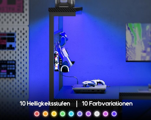 Listwa LED w półce oferuje 10 kolorów z możliwością regulacji jasności i temperatury barwowej. Przełączaj między trybem pracy, relaksu czy gamingu i stwórz idealną atmosferę.