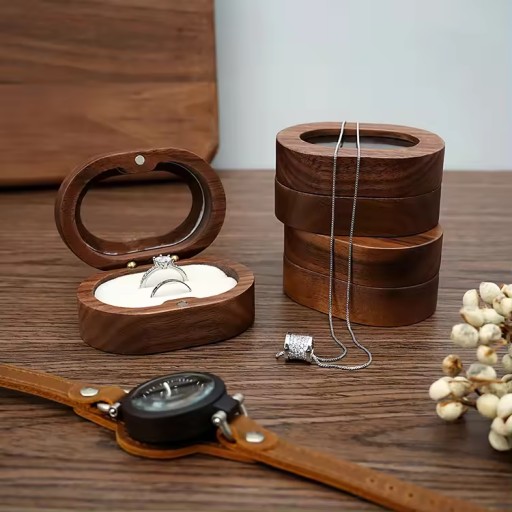 Wielofunkcyjne: Drewniane pudełko może być używane nie tylko jako pudełko na pierścionek zaręczynowy, pudełko na pierścionek obietnicy, pudełko na pierścionek zaręczynowy na specjalne okazje, takie jak Walentynki, zaręczyny, ślub, urodziny i rocznice itp., ale może być również używane jako małe pudełko na biżuterię do przechowywania kolczyków, broszek lub spinek, pierścionków i spinek do mankietów do codziennego użytku.