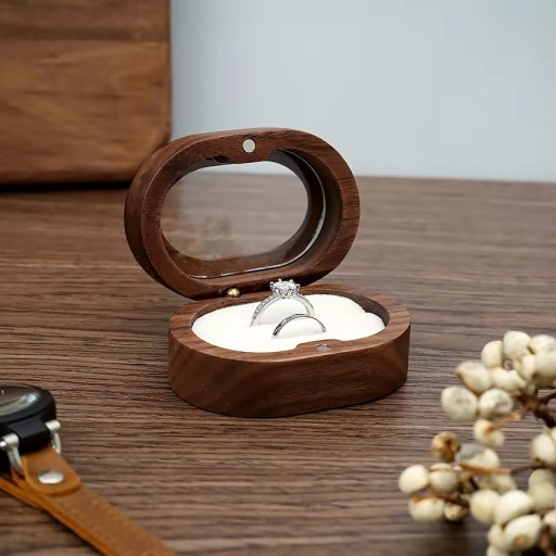 Owalne drewniane pudełko na obrączki ślubne, bez grawerunku, nie zawiera pierścionków, biżuteria z pierścionkami, pudełko na pierścionki z drewna orzechowego, drewniane pudełko na pierścionki zaręczynowe z przezroczystą pokrywką na zaręczyny i przyjęcia weselne