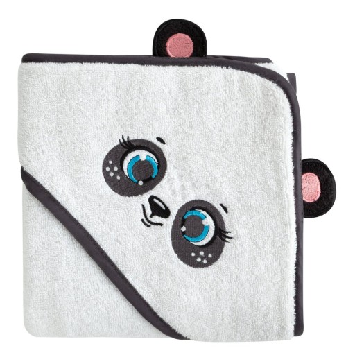 Dziecięcy ręcznik bawełniany z kapturkiem zdobiony aplikacją szerokość: 100 cm, długość: 100 cm, kolor: biały, Gramatura: 450 GSM, Skład: 100% bawełna