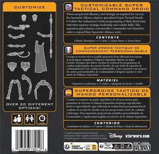 Customizable Super Tactical Command Droid to rozszerzenie do gry Star Wars: Legion, które daje możliwość stworzenia dwóch unikalnych, w pełni spersonalizowanych postaci, które wzbogacą Twoje armie Separatystów.