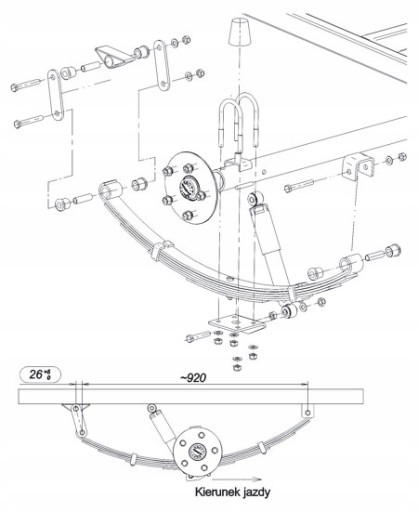 Amortyzator OLEJOWY do osi resorowanej - krótki do przyczep towarowych