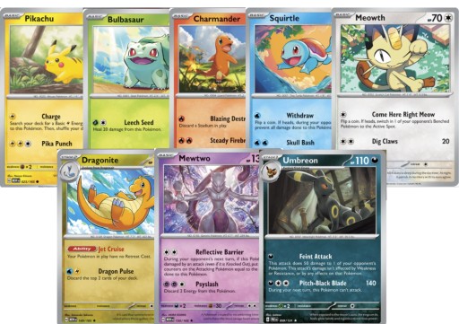 - Karty różnych typów: Pokémony, Trenerzy(bez powrórek)