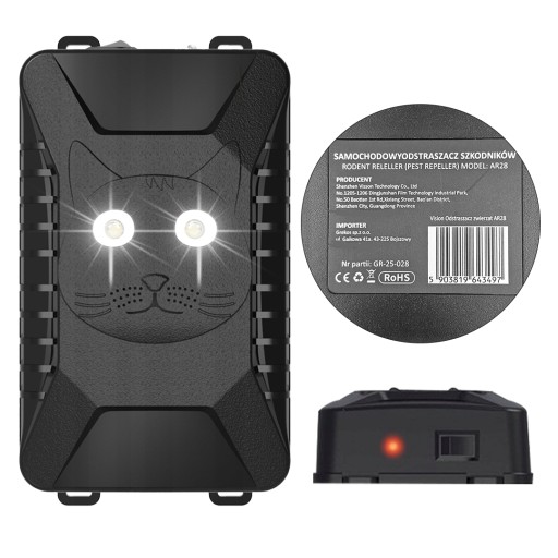 Автомобильный отпугиватель куниц AR28, ультразвук + стробоскоп, на батарейках и 12В