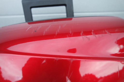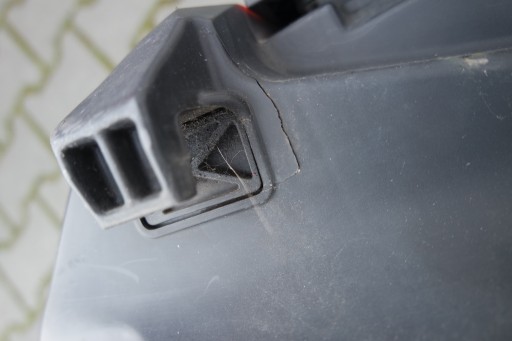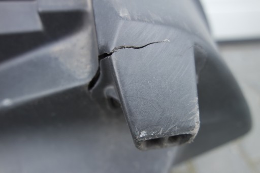 Kufry z demontażu, stan widoczny na zdjęciu, ułamane mocowanie w jednym kufrze oraz nadpęknięte mocowania.