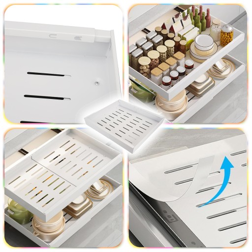 Przekształć nieuporządkowaną przestrzeń w idealnie zorganizowaną strefę przechowywania dzięki uniwersalnej, wysuwanej półce z regulacją szerokości. To funkcjonalne rozwiązanie sprawdzi się zarówno w kuchni, jak i w łazience czy spiżarni – wszędzie tam, gdzie potrzebujesz więcej miejsca bez wiercenia i montażu.
