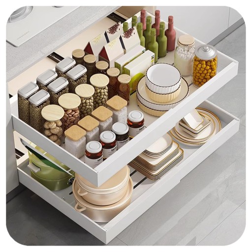 ✔️ Idealna pod zlewem, nad zapasami, przy kosmetykach lub środkach czystości – pomaga uporządkować wszystko, co do tej pory nie miało swojego miejsca.