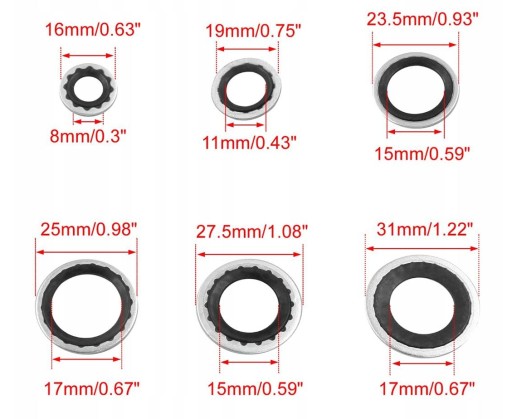 Rozmiary uszczelek (średnica zewn./wewn.):