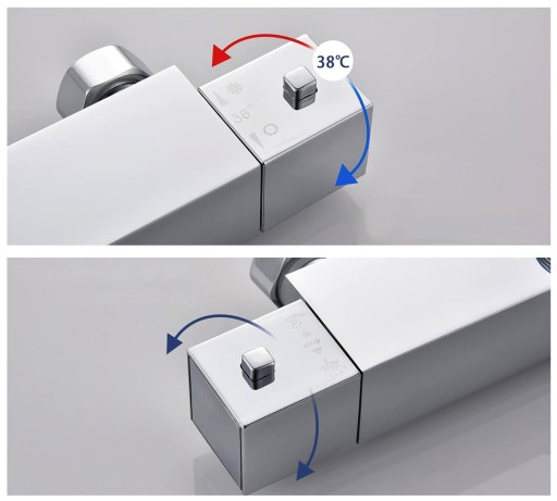 ✅Bateria z ceramiczną głowicą termostatyczną umożliwia precyzyjne ustawienie temperatury. Ponadto wyposażona jest w blokadę przy 38°