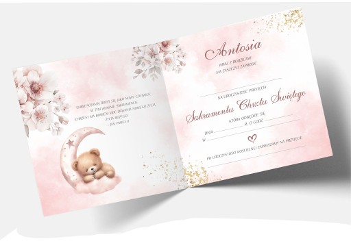Zaproszenia na Chrzest Święty w wersji podstawowej uzupełnione o imię oraz zdjęcie Twojego dziecka.