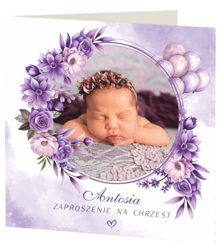 Zaproszenia na Chrzest Święty w wersji podstawowej uzupełnione o imię oraz zdjęcie Twojego dziecka.