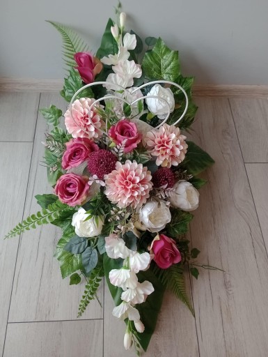 SZTUCZNE KWIATY NA GRÓB = STROIK Z SERCEM