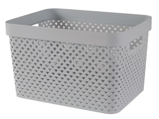 Popularne pojemniki ażurowe Pure, pasujące do każdego wnętrza. Pojemniki zostały wyposażone w małe otwory po obu stronach, co pomaga w ich przenoszeniu. Występują na innych naszych aukcjach w kilku rozmiarach oraz w kilku, atrakcyjnych kolorach. Chropowata powierzchnia ogranicza przemieszczenie się przedmiotów podczas przenoszenia pojemnika. Dzięki licznym otworom pojemnik można z powodzeniem używać w łazience, bądź kuchni. Pojemnik jest bez pokrywki.