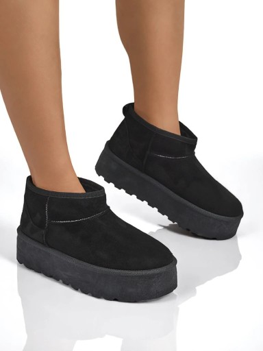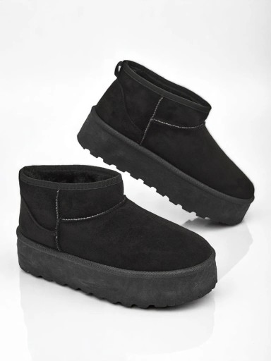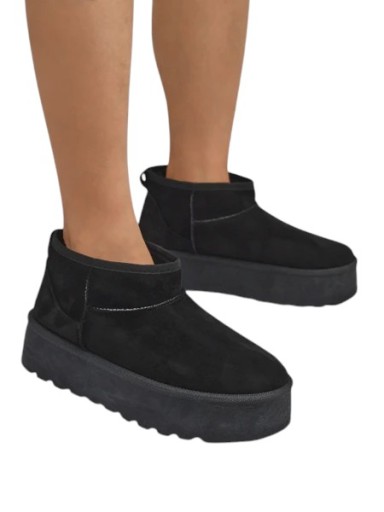 Świetne damskie zimowe buty typu śniegowce na platformie. Cholewka wykonana jest ze skóry ekologicznej zamszowej, środek ocieplony futerkiem. Idealna baza na zimę!