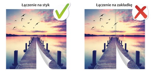 Nasze fototapety montuje się na styk, a nie na popularną zakładkę, co sprawia, że łączenia stają się niemal niewidoczne. Taki sposób montażu pozwala uzyskać równą, gładką powierzchnię bez widocznych zgrubień. Dzięki idealnemu dopasowaniu brytów, ściana zyskuje spójny, estetyczny wygląd.