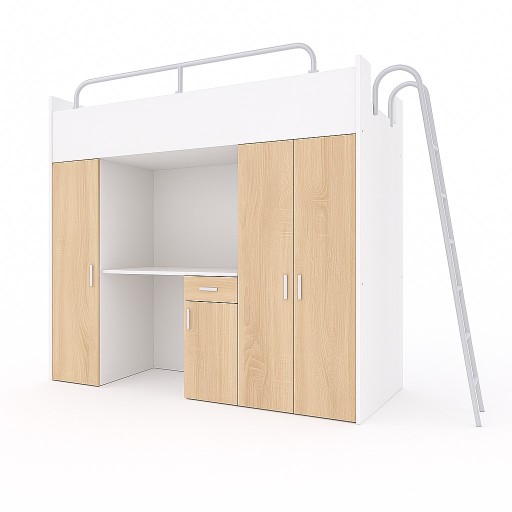 Łóżko piętrowe KIKI z biurkiem i schodkami to idealne rozwiązanie do pokoju dziecięcego lub młodzieżowego. Łączy funkcjonalność, wygodę i oszczędność miejsca w jednym nowoczesnym meblu. Na górze znajduje się wygodne, bezpieczne łóżko z solidnymi barierkami ochronnymi. Pod nim zaprojektowano przestronne biurko z półkami i schowkami – idealne do nauki, pracy lub kreatywnych zajęć. Z boku umieszczono stabilne schodki, które zapewniają wygodny i bezpieczny dostęp na górę, a jednocześnie zajmują niewiele miejsca. KIKI to przemyślana konstrukcja, która pomaga utrzymać porządek i maksymalnie wykorzystać przestrzeń w pokoju. Model KIKI5 jest bardzo podobny do wersji KIKI4 – różni się jednak tym, że w prezentowanej wersji regał posiada zamknięte fronty, podczas gdy w KIKI4 regał jest otwarty.