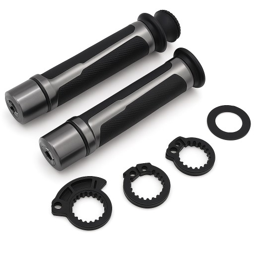 Uniwersalne końcówki do kierownicy 22mm. Antywibracyjne ciężarki pasują do wszystkich motocykli. Ciężarki podnoszą komfort jazdy niwelując drgania kierownicy. Dodatkowo podnoszą walory estetyczne motocykla. Montaż odbywa się przez skręcenie śruby kluczem imbusowym co sprawi że znajdująca się wewnątrz guma rozszerzy się klinując wewnątrz kierownicy.