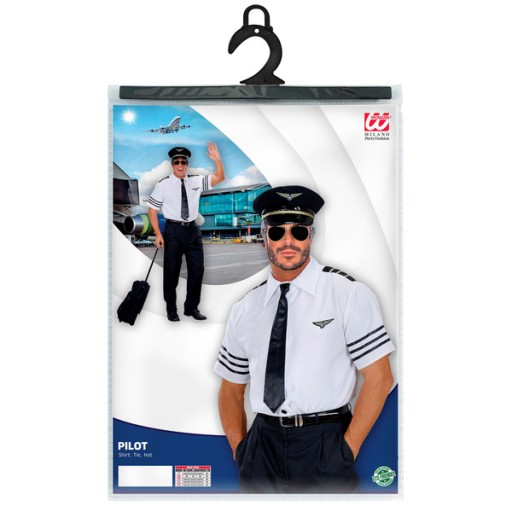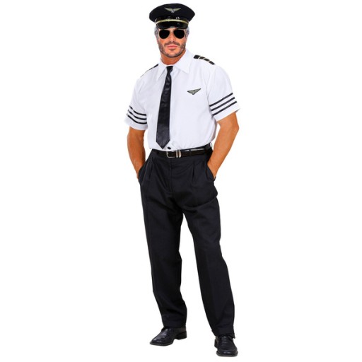Biała koszula z kołnierzykiem i krótkimi rękawkami wykończone ozdobnymi czarnymi paskami. Na piersi naszyte emblematy lotnicze, na ramionach - pagony.