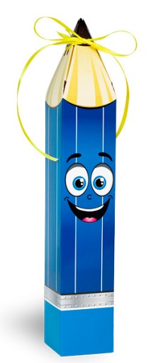 - W zestawie: kartonowy, laminowany Wesoły Ołówek oraz wstążeczka