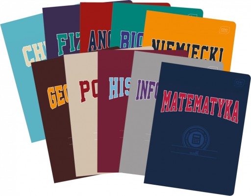 Zeszyt przedmiotowy Interdruk, A5, 60 kartek, 10 sztuk: Polski, Angielski, Niemiecki, Geografia, Matematyka, Historia, Informatyka, Biologia, Fizyka, Chemia